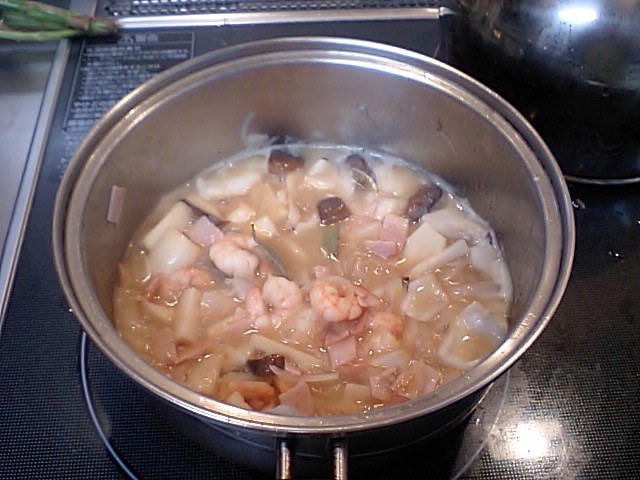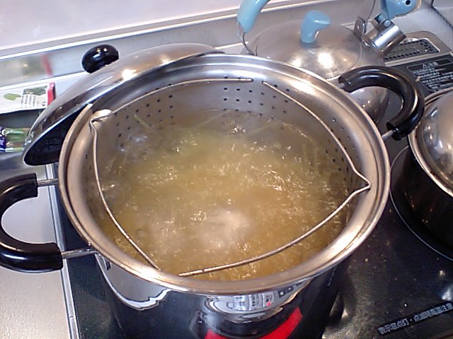 2007/07/08 Category : ぐるめ(・∀・) 赤のパスタ 仕事も試着茶いけないことはわかってるけど、体の調子も正直悪いし、 気分的な問題によりなかなか進んでいないことは確か。 まぁ今日はUNIQLOに行って、新しいシャツを数枚ゲットしたわけだし、 明日からの気分を変えるのには良い1日だったのかも。 ■赤のパスタ たまには自分で料理しなくっちゃね、休日ですもん、趣味大繁盛。 ・たまねぎ、パンチェッタの代わりにハムを、ナベでいためる。 ・本当はオリーブオイルが良かったのに…サラダ油にて。 たまねぎが良くなってきたら(目視判断による)… ・バターひとかけを溶かしたあとに、解凍したシーフードミックス(白ワイン+黒胡椒で下味)を入れる ・白ワイン、コンソメ、岩塩で味を調整しながら煮る。 てな感じで下ごしらえ?をして。 ・ローレルを毎度入れ忘れるが、それも入れてしばらく煮る。 ・今日は煮詰まるところまで煮込んでみる。 ・ちなみに味付けは適当なわけであり、これくらいのものをこれくらい入れるという決まりは特に無い。 でなわけでぐつぐつ行ったら、こんな感じ。 そういえば、ニトリでこんなもんが。 パスタ茹でようなべ、ざるつき。 簡単に言えば、ざるがなべの中に入ってるわけで、茹で上がったらざるの部分だけ出してあげれば良いわけですよ。 いやぁたいしたものだ、非常に便利ですw パスタの茹で汁を取り分けながら…なんてこともしなくていいわけですわ。 もっと早くこのなべには知り合っておきたかった…w てなわけで、パスタも茹で上がり、ソースも煮詰まったので 完成。 本日は、ちょっとトマトの酸味が聞いた、けど結構気の利いたパスタとなりました。 ヽ(´ー`)ノおいしかった ■ソースの再利用 ところで、パスタソースが少々余ってしまったわけで。 簡単に言えば、トマトソースなわけだから、どういう再利用も出来るんだろうけど… 今日は、たまたまポテトサラダにしようと思っていたジャガイモがいたので、 ・ホイルで皿を作る ・ジャガイモをつぶして下に敷く ・例のソースを上に乗せる ・更に溶けるチーズを乗せる …で、オーブンで焼くわけですわ。 うん、酒のつまみにもなった。(≧∇≦)b グッジョブ! ところで、タバコを吸わなくなってから、体重の増加が著しいです…。 この1週間で3キロも太ってしまった…やばすぎる…_| ̄|○ 味覚も少し薄味にシフトしてきたようだし、いいんだか悪いんだか。